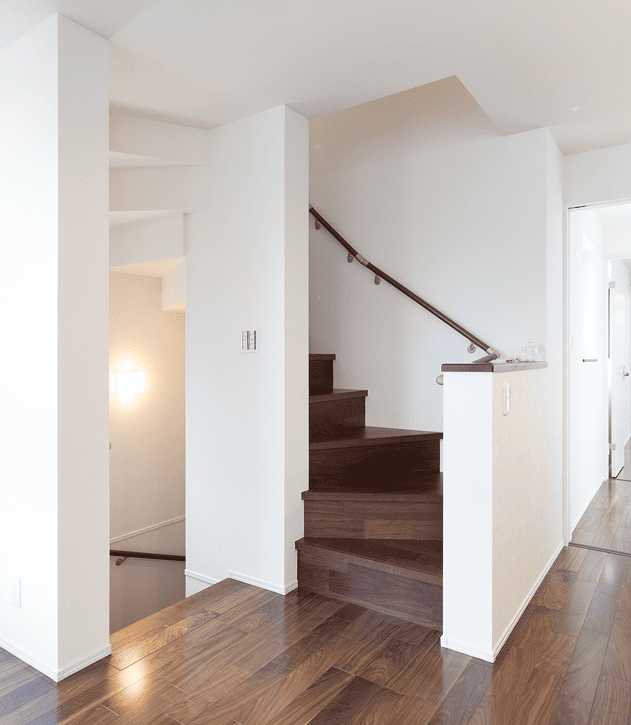 このフロア分けにより、お互いの生活音や動線を気にすることなく、程よい距離感を保ちながら暮らすことを可能にしました。