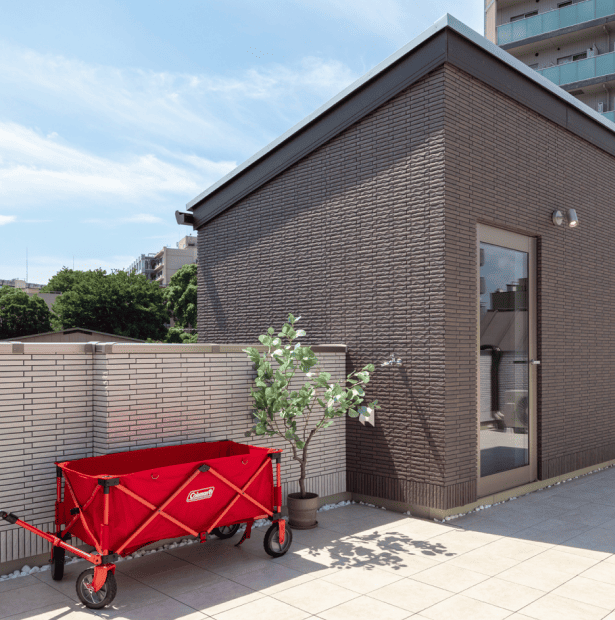 都内の風を感じられる広々としたルーフバルコニーで、天気の良い日はバーベキューなどをして楽しむこともできます。